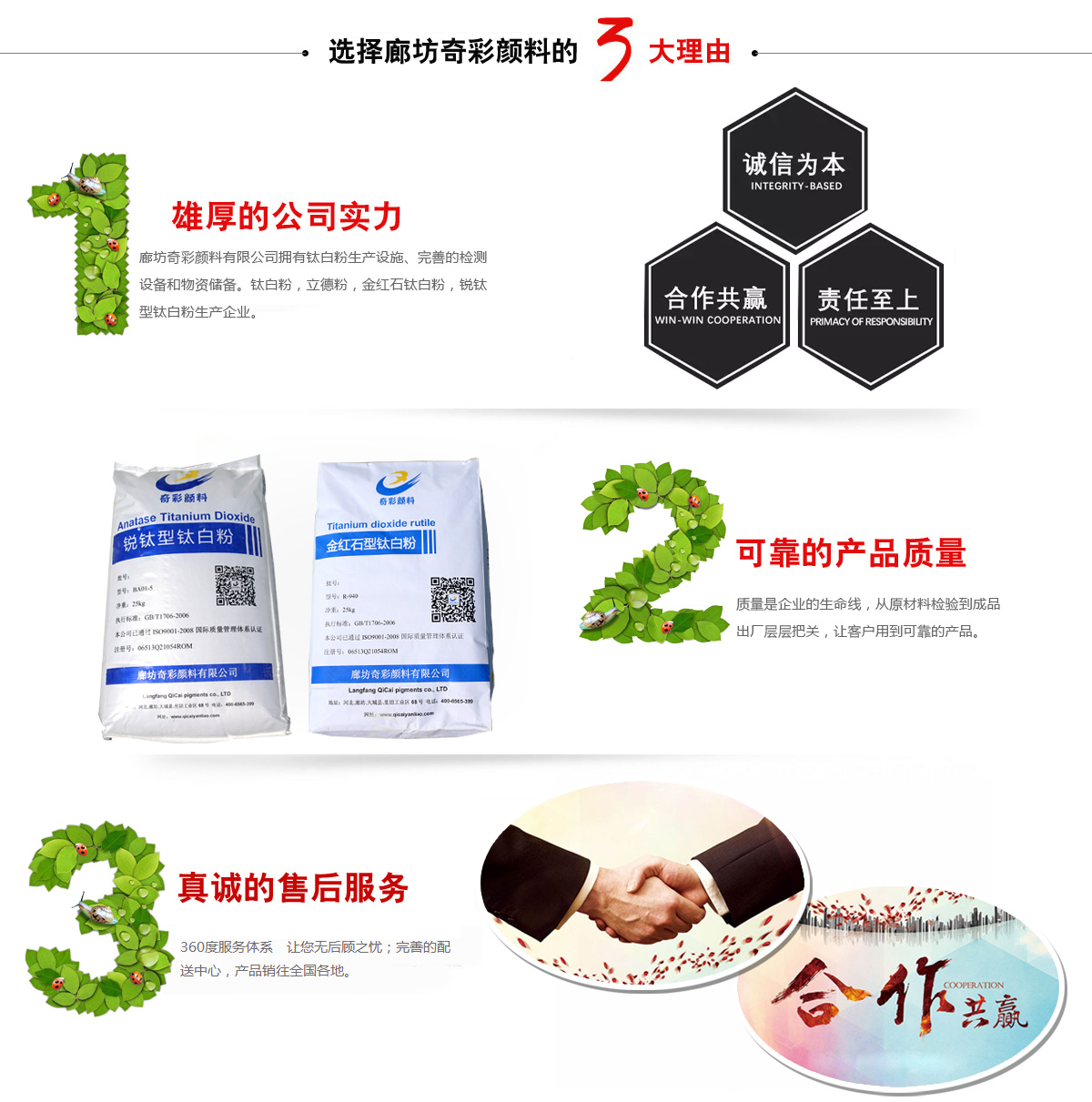 廊坊奇彩颜料有限公司,钛白粉,立德粉,金红石钛白粉,锐钛型钛白粉生产企业。公司拥有先进的生产设施、完善的检测设备和庞大的物资储备,销售网络遍布全国各地。